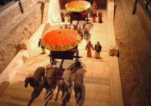 A few months later, a New York Times review made comparisons between the first emperor and China’s modern government. “The depiction of Qin’s bonfire and of his soldiers pushing his flailing enemies (they weren’t the emperor’s enemies) into a ditch caused the American Museum of Natural History to cancel its planned opening of ”The First Emperor of China” last July, when the news was still full of the Chinese Government’s violent suppression of student protests.… This re-enactment of the faraway Qin’s often despotic and often enlightened rule becomes more believable and complex in view of the parallels with recent events.”