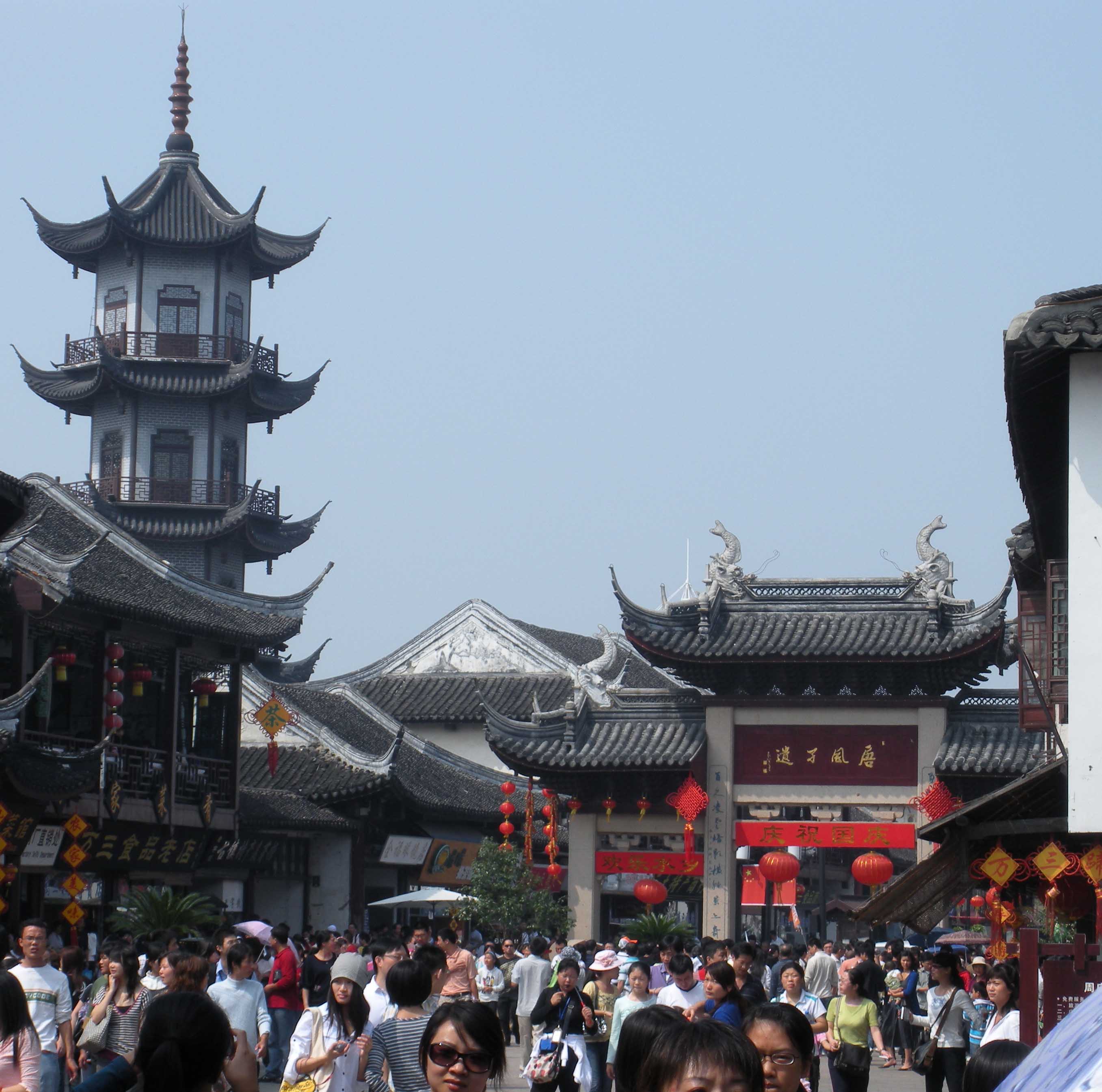 Zhouzhang, near Shanghai, is almost a thousand years old—built in 1086. Unlike most tourist attractions in America, this town is still occupied with 138,000 people, and they make their living from the tourists who cannot enter unless they pay a fee.