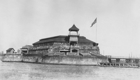 An American flag flying over Fort Santiago in Manila, Phillippines-c1920s