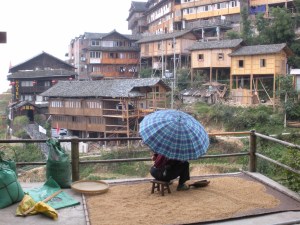 We arrived in the autumn and the rice had been harvested. The terraces were turning brown. For lunch, we ate in the village. The terraced rice was cooked in segments of bamboo over an open fire.