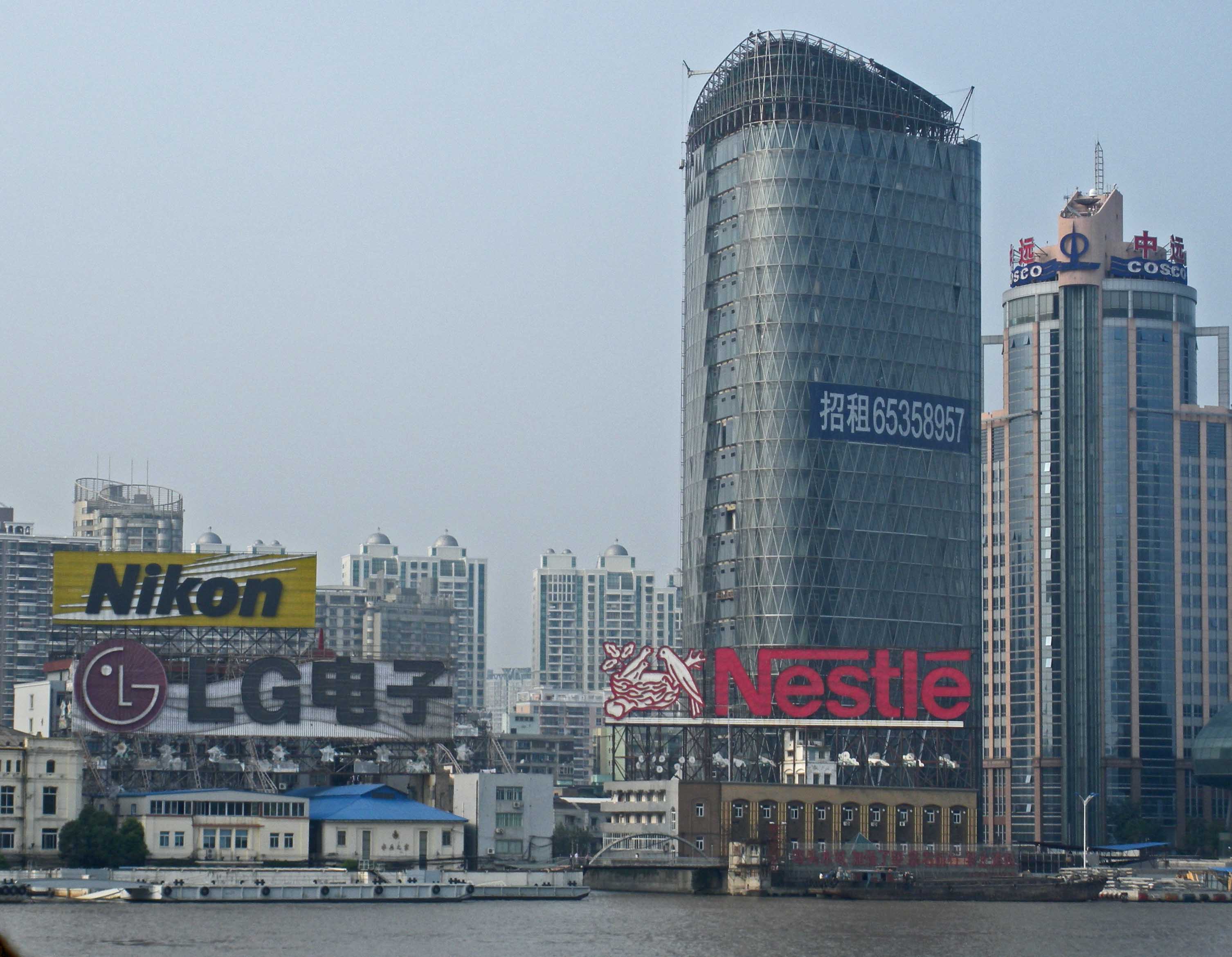 Look at the signs: Nikon, LG, and Nestle.